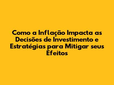 Ei, pessoal! Já pararam para pensar em como a inflação pode influenciar diretamente nas nossas decisões de investimento? É um tema super relevante, tanto para empresários quanto para investidores, e entender seus impactos é crucial para proteger nosso patrimônio e garantir um futuro financeiro mais estável. Neste artigo, vamos mergulhar fundo nesse assunto, explorando como a inflação age, quais estratégias podemos adotar para mitigar seus efeitos e como tomar decisões de investimento mais inteligentes. Então, preparem-se para uma jornada informativa e cheia de insights valiosos!