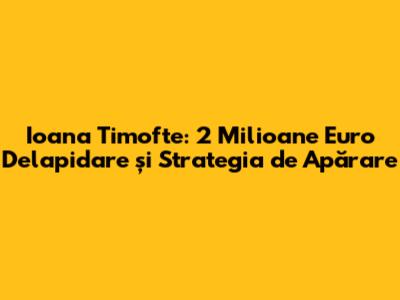 Ioana Timofte: 2 Milioane Euro Delapidare Și Strategia De Apărare