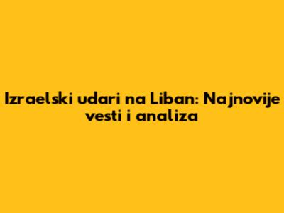 Izraelski Udari Na Liban: Najnovije Vesti I Analiza